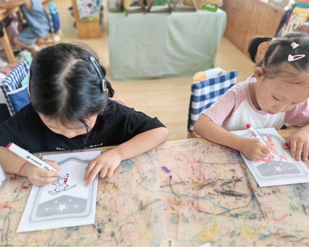 孩子们化身小小设计师,在统一版式的画纸上尽情创作:有的画出自己值日时浇花的场景,太阳公公笑眯眯见证;有的描绘和同伴一起整理玩具的欢乐画面;有的描绘帮忙分发餐具,每一幅作品都色彩斑斓、创意满满。