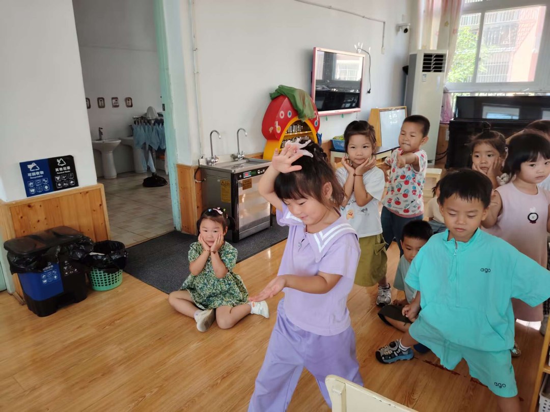 室内游戏时,扎着羊角辫的朵朵脆生生喊:“我们来玩123木头人——”“好啊,好啊” “1!2!3!木头人!”话音刚落,孩子们瞬间定住:烁单脚踮着,手还举在半空要抓蝴蝶;梳蘑菇头的敏半蹲身子,指尖刚碰到椅子;连最调皮的豆豆都绷直胳膊,舌头还歪在嘴角没收回,活像群被施了魔法的小木偶。 豆豆脸上的汗珠滑到鼻尖,他眼珠骨碌转,却不敢抬手擦——老师说木头人不能动呀!没过几秒,朵朵忍不住先笑出了声,嘴角一咧,胳膊也软了。这下像按了开关,蹲在地上的小姑娘“噗嗤”笑倒,踮脚的男孩“咚”地把脚放下,连豆豆都扯着帽子蹦起来:“我就知道你先动啦!” 室内笑声滚来滚去,下一轮的“123”又响亮地喊起来。