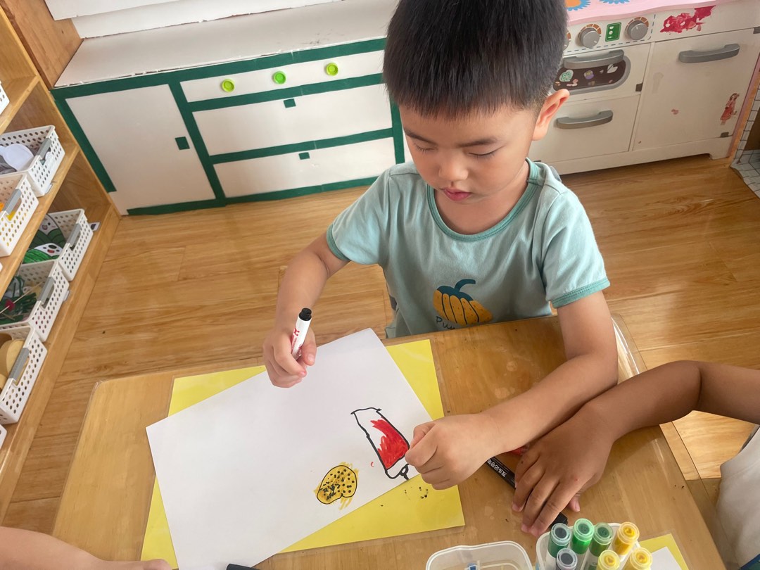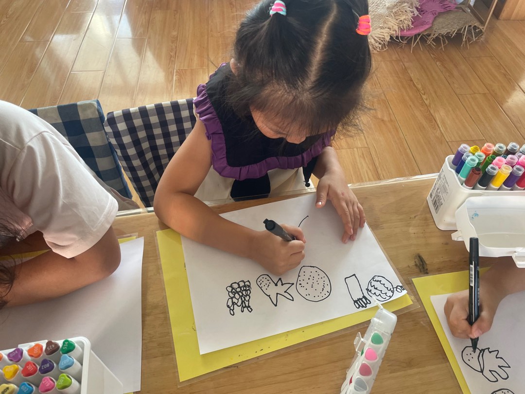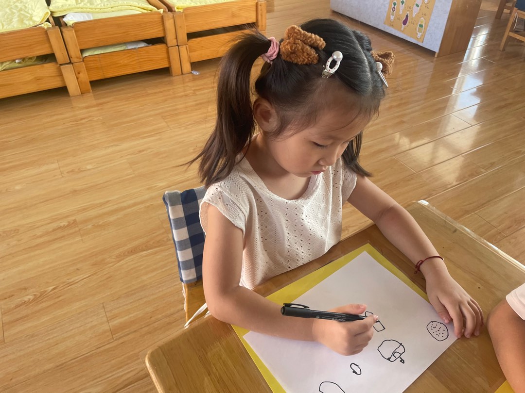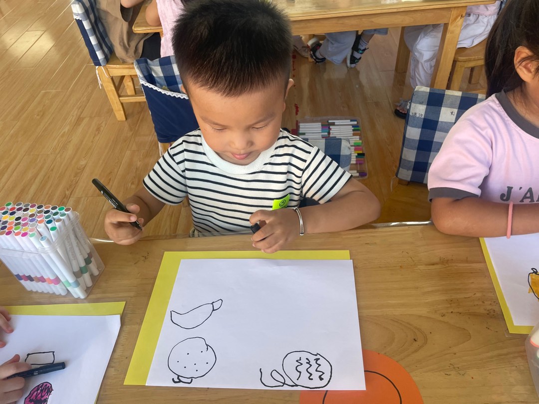 幼儿会尝试用不同颜色表现蔬果,如用红色画番茄、绿色画青菜,在选择和搭配颜色的过程中,提升色彩感知与运用技巧。握笔绘画、控制线条的过程,锻炼了幼儿手指的小肌肉群,提升手部精细动作的灵活性;同时,眼睛观察蔬果形态与手部绘制动作的配合,强化了手眼协调能力,为未来书写、操作等活动奠定基础。