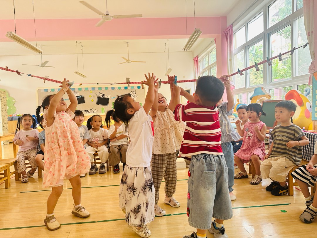 在充满童趣的幼儿园里,一场别开生面的“摘糖果”活动热闹开展,孩子们在游戏中尽情释放活力,收获满满欢乐与成长。 活动现场,老师精心布置了游戏场地,将系着彩色糖果的绳带悬挂在半空,仿佛为孩子们搭建了一座“甜蜜桥梁”。当活动开始的信号发出,孩子们瞬间被点燃了热情。有的孩子三五成群,齐心协力地跳跃、伸手,尝试摘下心仪的糖果,在合作中感受团队的力量;有的孩子则鼓足勇气,独自挑战,踮起脚尖、伸展手臂,每一次向上的尝试都充满了坚定,当成功摘下糖果时,脸上洋溢的笑容比糖果还要甜蜜。 围观的小伙伴们也毫不吝啬地送上掌声与欢呼,整个活动室里充满了欢声笑语。通过这场“摘糖果 ”的活动,孩子们不仅锻炼了肢体协调性与弹跳能力,更在游戏中学会了合作、勇敢与坚持,在童趣满满的氛围中,留下了一段关于运动与欢乐的美好记忆。