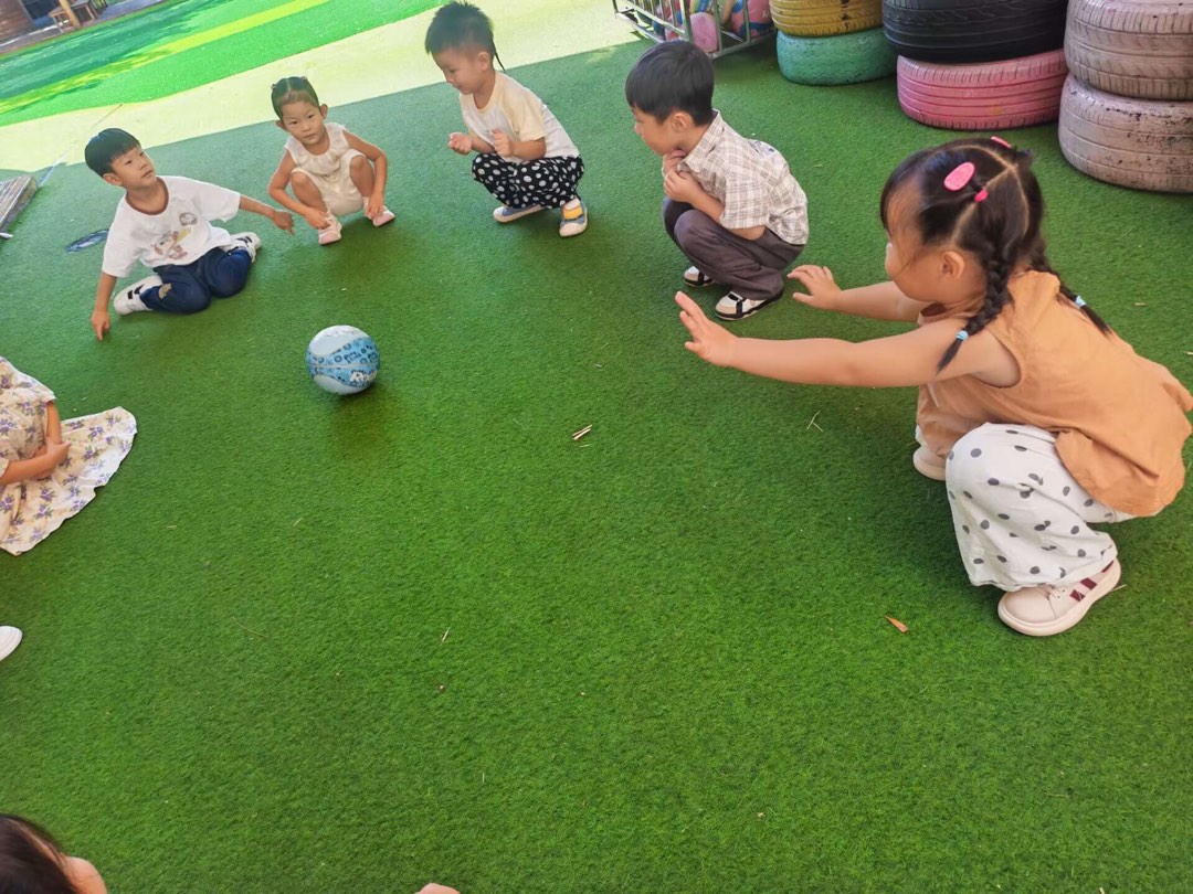 孩子们全神贯注,或蹲或坐,小手时刻准备着。当皮球滚动而来,他们灵活反应,在游戏中锻炼了手眼协调能力,更学会了团队合作与耐心等待。这不仅是一场游戏,更是他们在户外尽情释放活力、收获友谊与成长的美好时光。这场玩球游戏,不仅让中班的孩子们在户外尽情释放了活力,更在游戏中收获了成长与友谊,为幼儿园的生活增添了一抹灵动的色彩。
