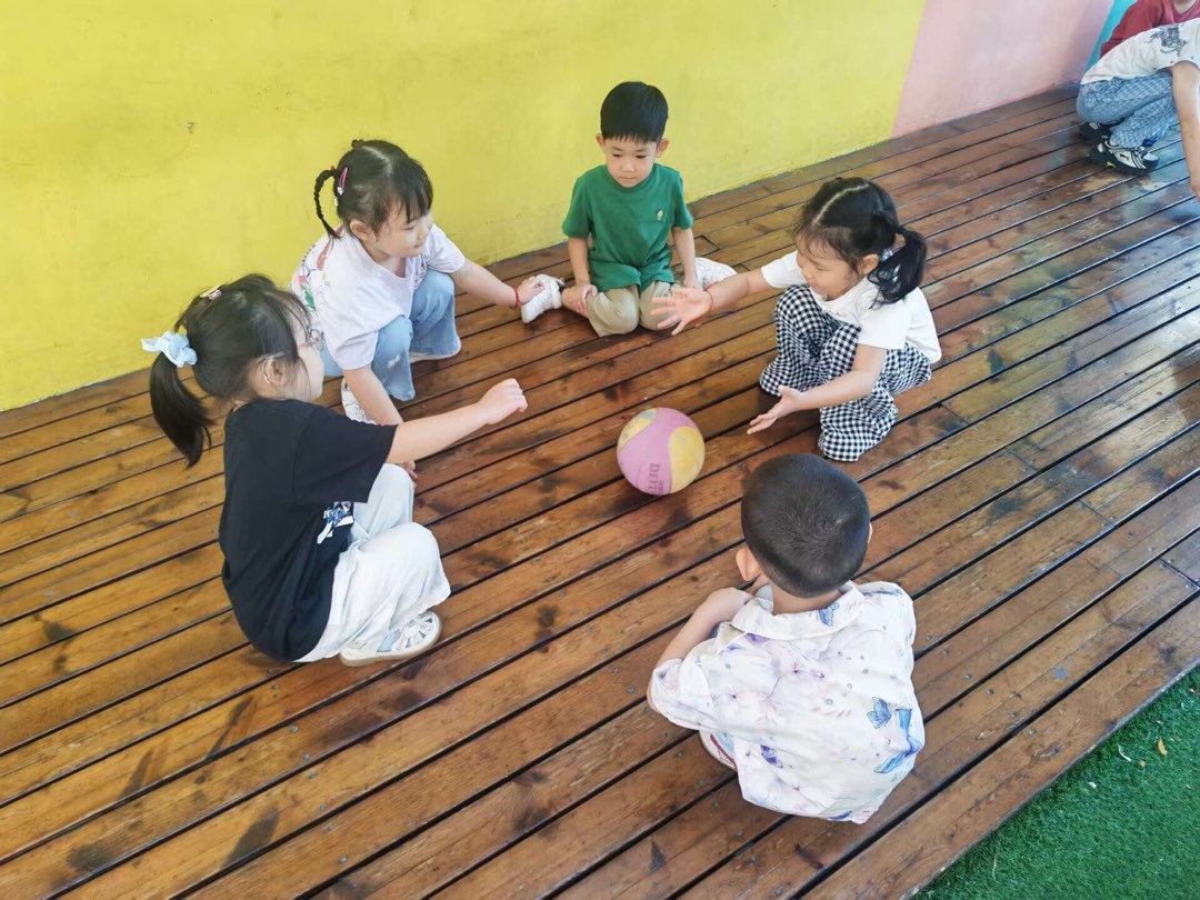今天小朋友们正开展一场趣味十足的传球游戏。他们围成圆圈,目光紧紧追随那只彩色皮球,在传递间,稚嫩的笑声洒满活动场。
