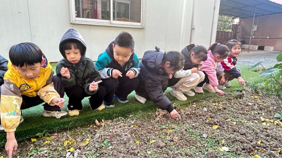 “快看!这里有小芽芽冒出来啦!”伴着脆生生的惊呼,大2班的孩子们把大班段种植区围了个水泄不通——一场自发的“自然观察课”在幼儿园户外角落热闹开演。小脑袋挤着小脑袋,小手扒着泥土边:卢可欣指尖轻碰刚冒头的幼苗,卢宸宇蹲得膝盖贴地,眼睛直勾勾黏在土缝里的新绿上。“是我们上次撒的种子吗?”“它明天会不会长得比我手还高?”叽叽喳喳的问题里,藏着把“等待”熬成“惊喜”的雀跃。从撒下种子时的好奇,到今天蹲守的专注,泥土里的小生命,成了孩子们最生动的“成长课程“。