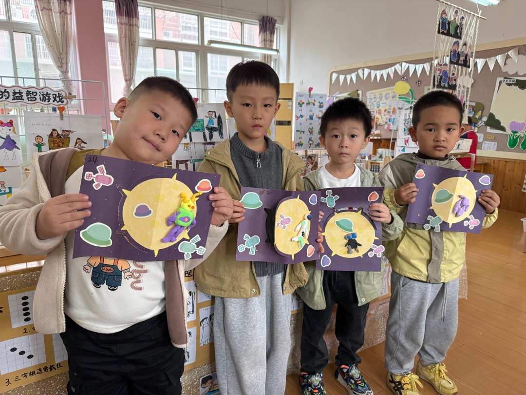 活动开始后,江沐宸一边做一边说:“你看,这个外星人方方正正的身体是绿色的,中间还有紫色的电池按钮。它的脑袋是黄色的,上面嵌着两颗橙色的眼睛,正俏皮地眨着。它头顶还有细细的天线——这样外星人就能收到外星球的信号了。”韩子安则做了一个白色身体的外星人,两个蓝色的眼睛镶嵌在黑白的脸上,上面还有电池的按钮。“我的外星人是黑色的,头是灰色的,还有手和脚。”郑智昂在一旁说道。小朋友都沉浸在用黏土制作机器人的快乐之中。