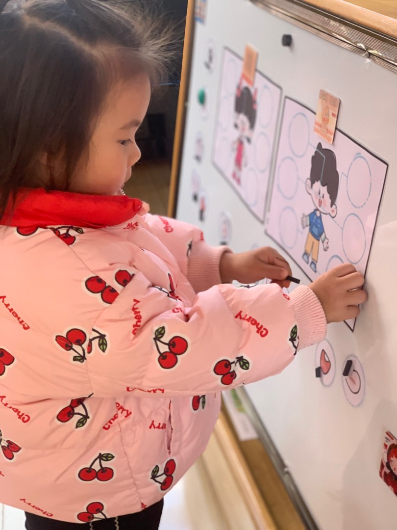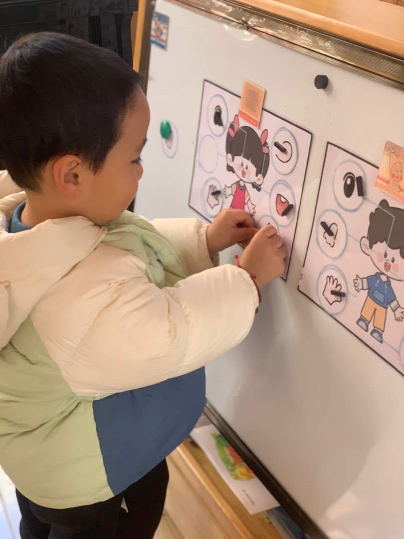 活动伊始,老师拿出色彩鲜艳、形象生动的身体部位操作卡,瞬间吸引了孩子们的目光。卡片上,大大的眼睛、张大的嘴巴等简笔画栩栩如生。老师先耐心讲解,让孩子们认识卡片上的身体部位。随后进入操作环节,孩子们兴奋地拿起卡片,将印有身体部位的那一面与自己身体对应部位比对,一边比划一边念叨着“眼睛在这里”“鼻子在这儿呢”。有的孩子还和旁边小伙伴互相指出对方的身体部位,现场气氛热烈。通过这次操作卡活动,孩子们不仅在轻松愉快的氛围中认识了身体各个部位,还锻炼了手眼协调能力。这种寓教于乐的方式,让孩子们在玩中学习,在学习中成长,为今后更深入的身体认知和自我保护意识培养奠定了良好基础。