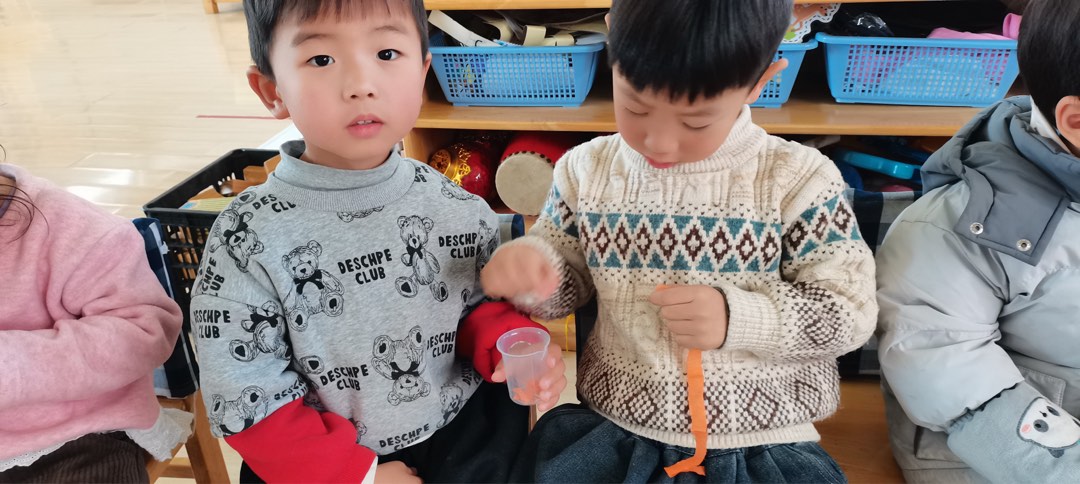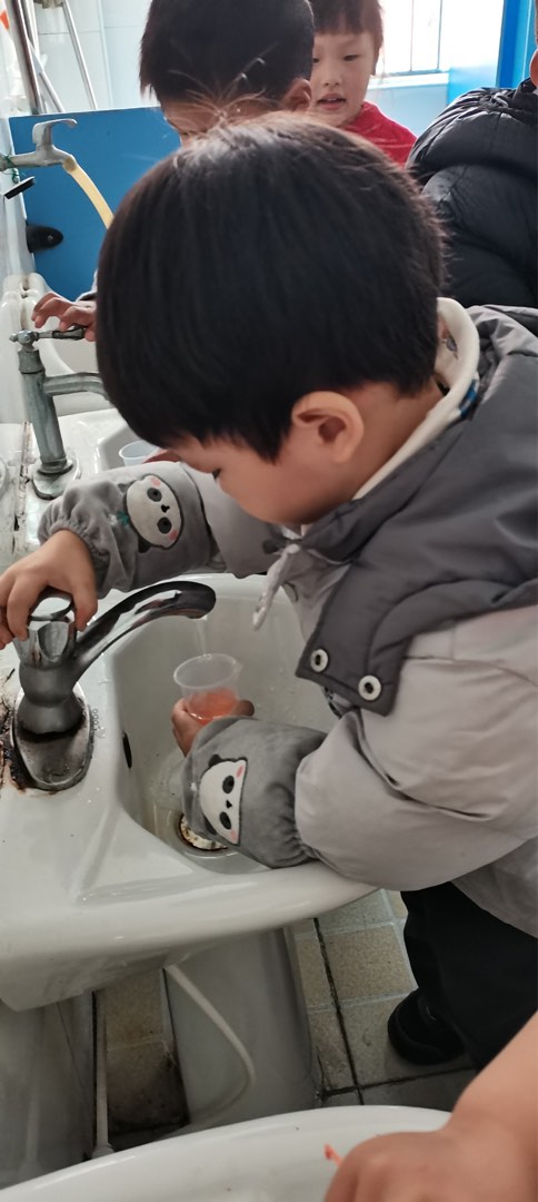 当清水与彩饰在杯中相遇,孩子们满眼期待地将杯子放到户外,等待冬日的魔法把它们变成晶莹的冰冻花。这次活动不仅锻炼了孩子们的手部精细动作和动手能力,还让他们直观感受到水遇冷结冰的自然现象,在小小的心里种下探索自然的种子。看着孩子们围着即将成型的冰冻花叽叽喳喳讨论的样子,冬日的幼儿园也变得更加温暖热闹。